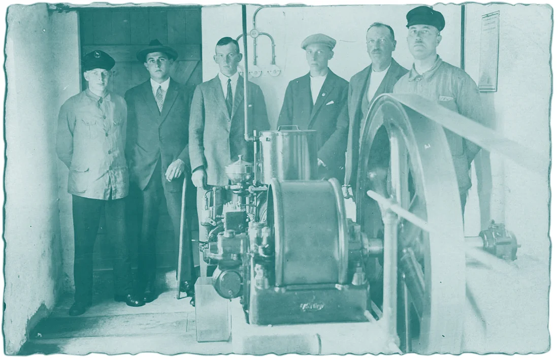Justus und sein Neffe Heine gründen ein Unternehmen zur Versorgung des Dorfes mit Elektrizität – eine revolutionäre Neuerung. Im Gebäude Drunken-Manns-Stieg Nr. 1 wird dafür 1925 im Erdgeschoss eine Dieselgeneratorenanlage installiert. Das Dorf wird bis 1939 mit Licht und Strom versorgt. In den frühen Abendstunden wird die Anlage abgeschaltet. Wenn abends das Licht in den Häusern des Dorfes zu flackern beginnt, heißt es: "Nu geit Justus slapen!"
